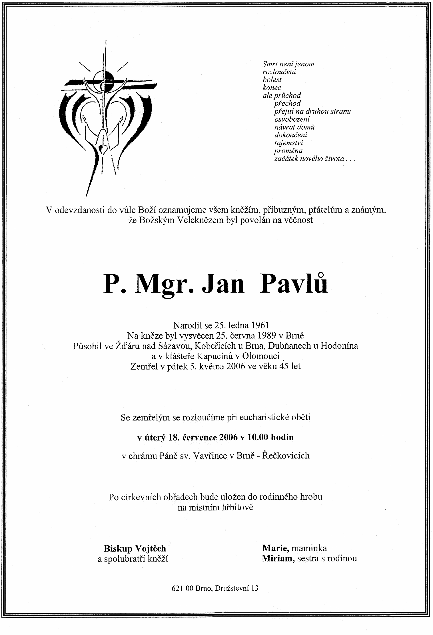Jedenáctým farářem v Dubňanech se stává P. Mgr. Jan Pavlů, narozen 25. ledna 1961 v Brně, jako syn zahradního architekta a bankovní úřednice.. Maturoval na gymnáziu v Brně-Husovicích. Pracoval jako dělník ve Zbrojovce Brno. Bohosloví studoval v Litoměřicích. V roce 1989 byl vysvěcen na kněze. Působil ve Žďáru n/Sázavou, Kobéřicích u Slavkova, v Nížkovicích. Přednášel dogmatiku na TK v Brně. Dále studoval na universitě v Pasově, stáže v Římě, v Ulmu v Německu. V roce 2000 pro závažnou nemoc odešel z Dubňan. Dne 5.5.2006, ve věku 45 let byl Pánem povolán na věčnost.